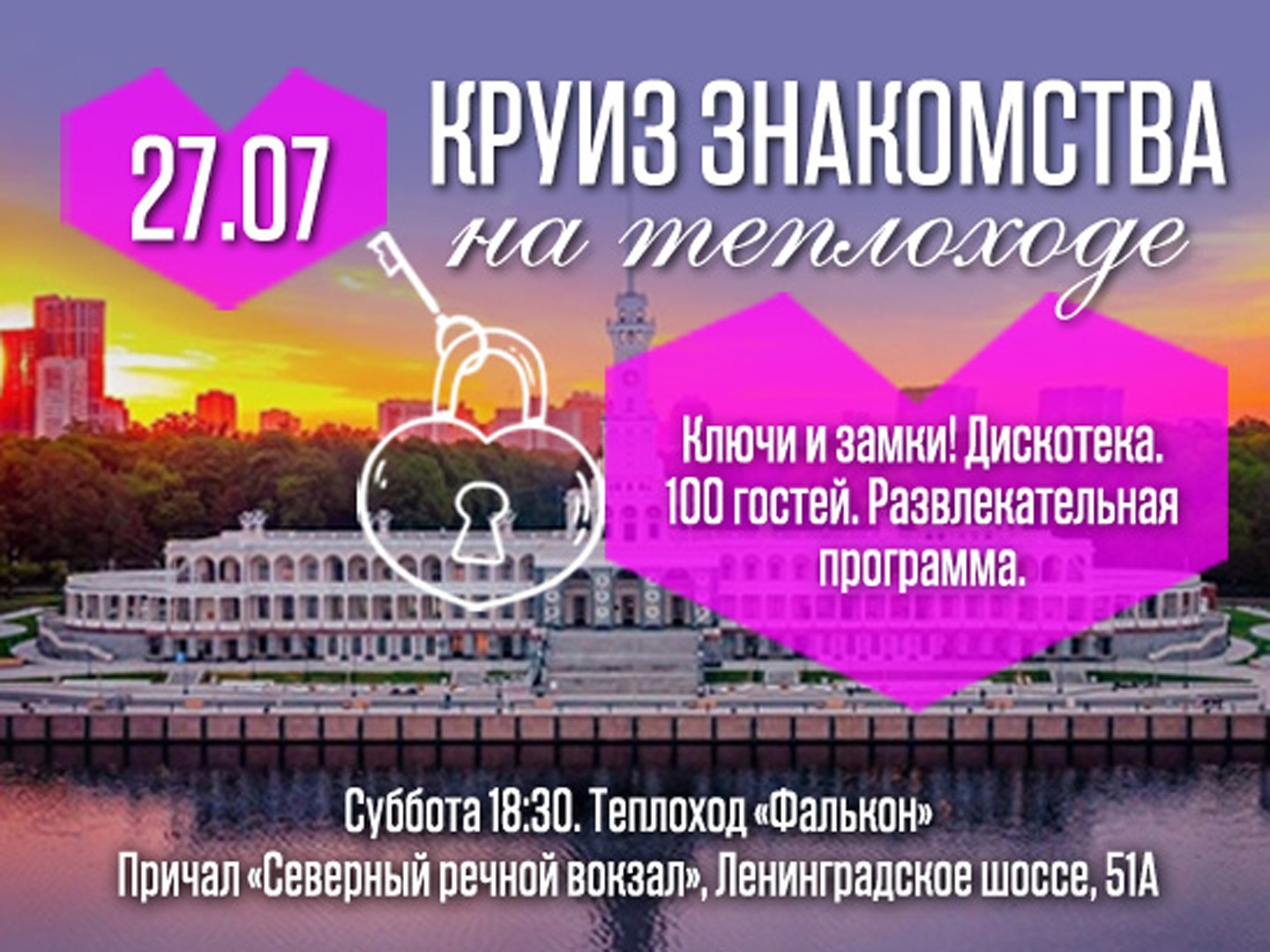 Сбор гостей с 18.30 на причале "Северный Речной вокзал".