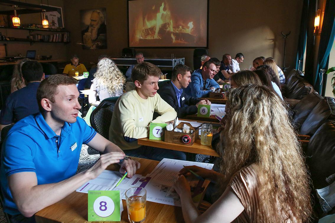 На мероприятии БЫСТРЫЕ СВИДАНИЯ столы пронумерованны. Это делается для удобства, чтобы не сбиться во время переходов от стола к столу. За каждым столиком располагается по два человека, мужчина и женщина. Экспресс-свидание длится 6-7 минут, общение один на один, после чего звучит сигнал и мужчины пересаживаются, за следующий по номеру столик, где их ждет знакомство с новой девушкой. Гости после каждого перехода делают отметки в Картах симпатий, кто им понравился. Карты симпатий в конце мероприятия сдаются организаторам и в этот же вечер Вы узнаете результаты.